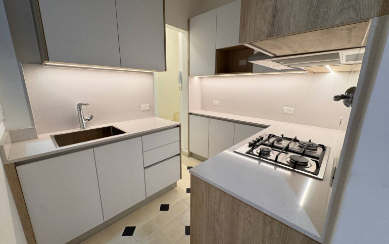 Cocina independiente, totalmente renovada, con mobiliario moderno de cierre suave, mesadas de calidad, artefactos Candy, cocina a gas y anafe eléctrico, sistema de calefacción Por caldera PEISA.